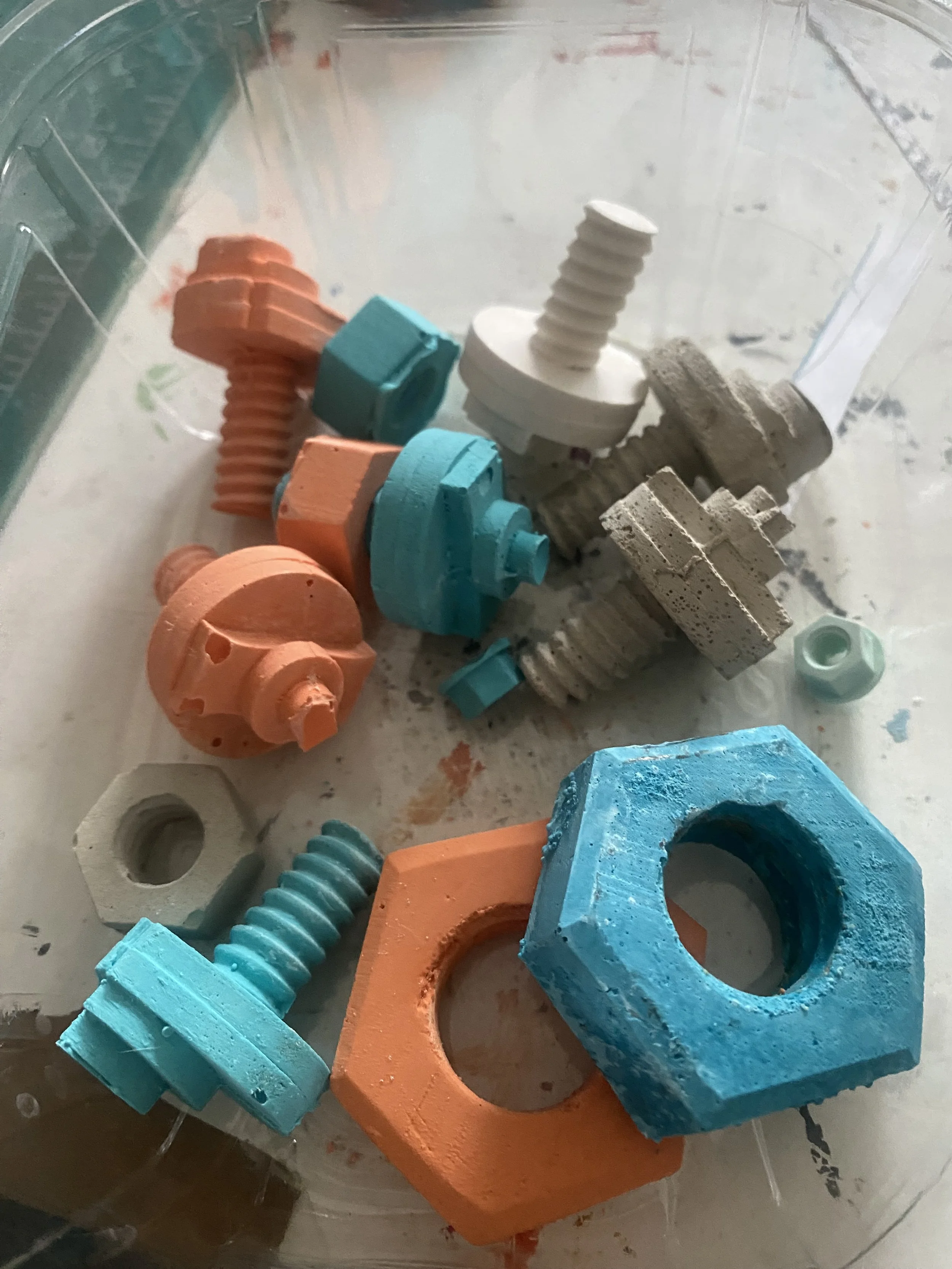 Working with the silicone moulds developed in the previous stage, I began casting small join components, paying close attention to consistency across multiples. The aim was not a single successful cast, but repeatability.